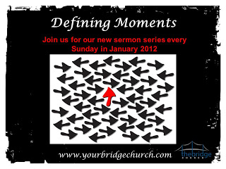 Today I am going to post my “Monday Morning Commentary”. Sure, it’s Tuesday, but the whole spirit of the “Monday Morning Commentary” is that of an armchair quarterback. It doesn’t really matter when you rehash the plays and tout the victories, as long as its done before the next big game. At the Bridge Church, we are in the middle of, and nearing the end, of our 2012 kickoff series “Defining Moments”. Since most of us spend at least one moment contemplating the end of one year and the beginning of the next, what better time for the church to help us outline a plan for our year? We want 2012 to include defining moments that we can look back on and know that our lives were forever altered in those moments. In the Bible we find many defining moments, most of which ended with altars to God being erected as monuments to the greatness of our God.